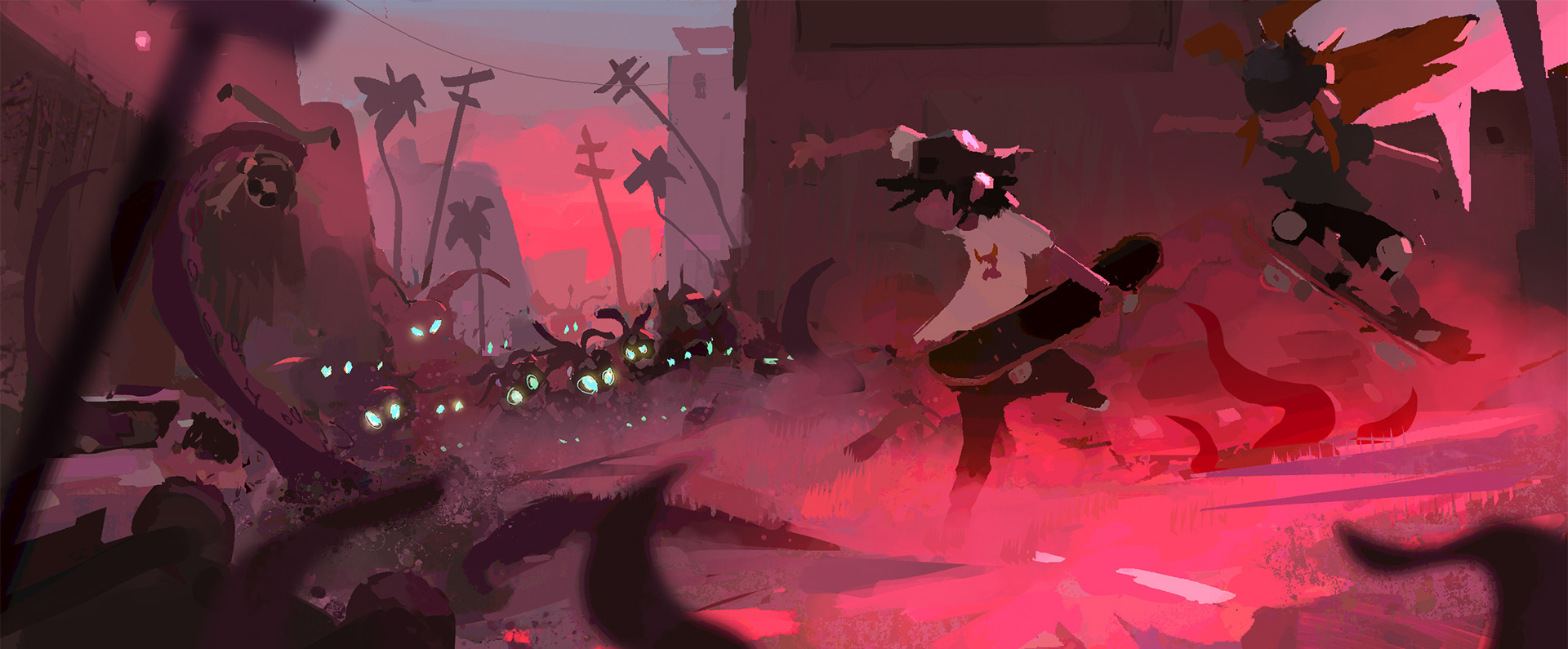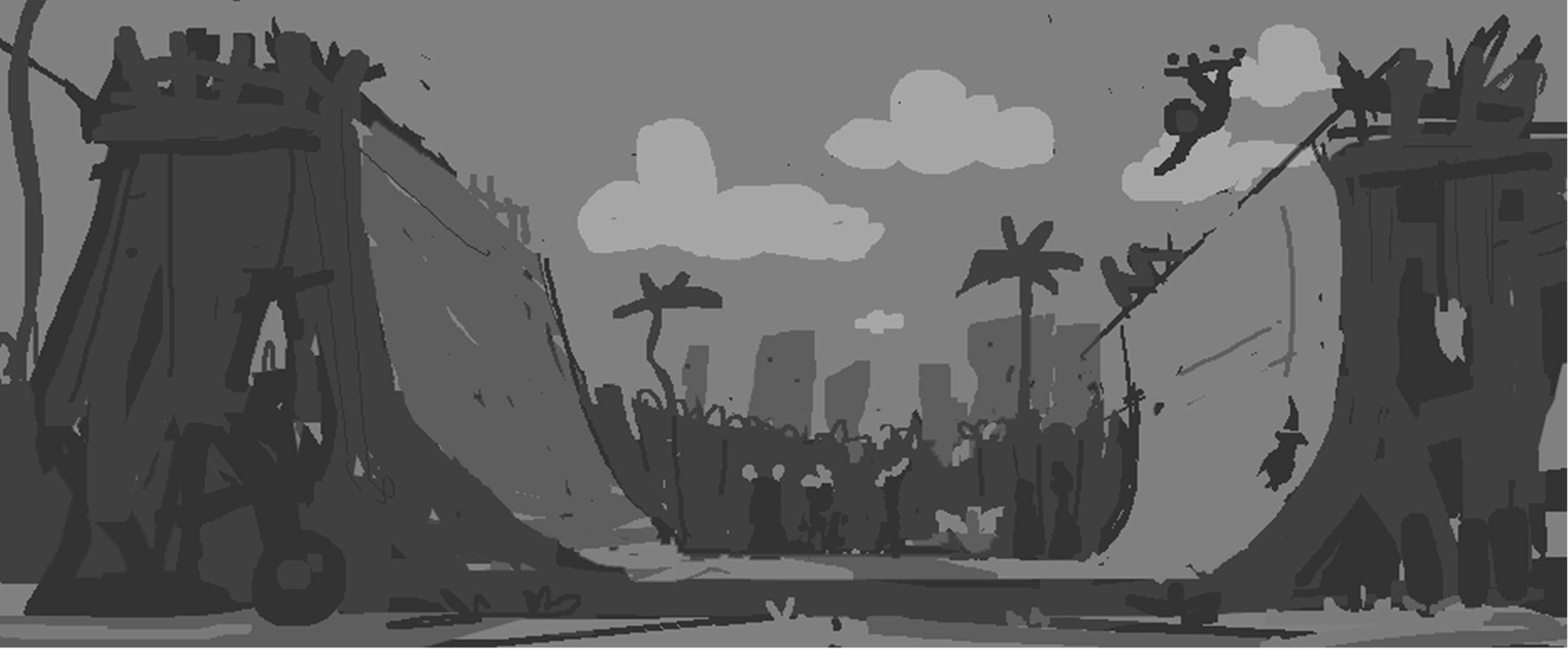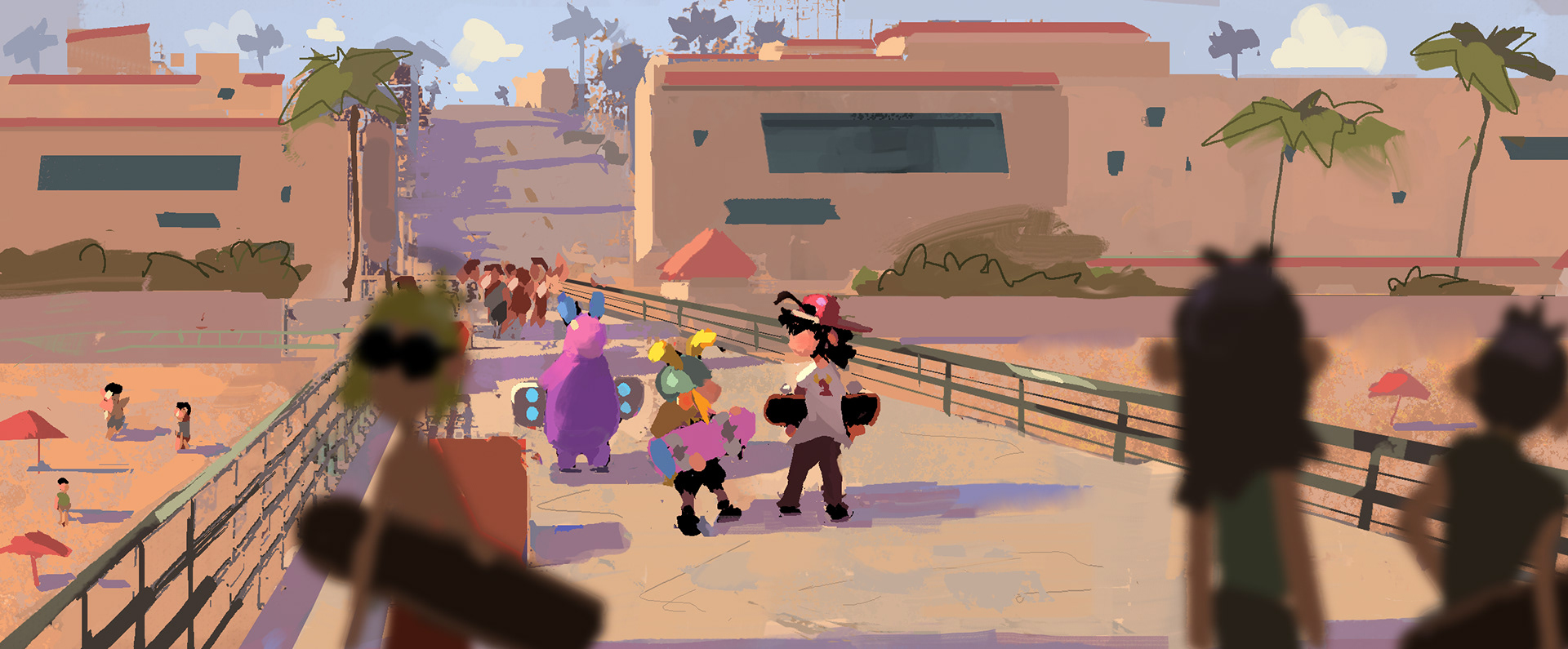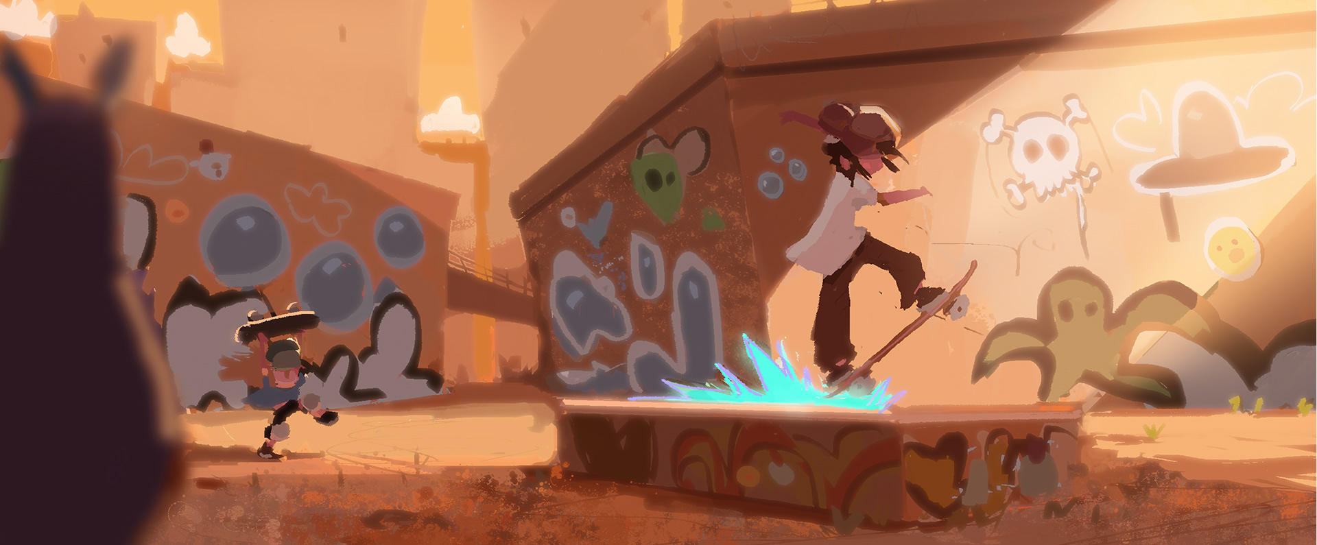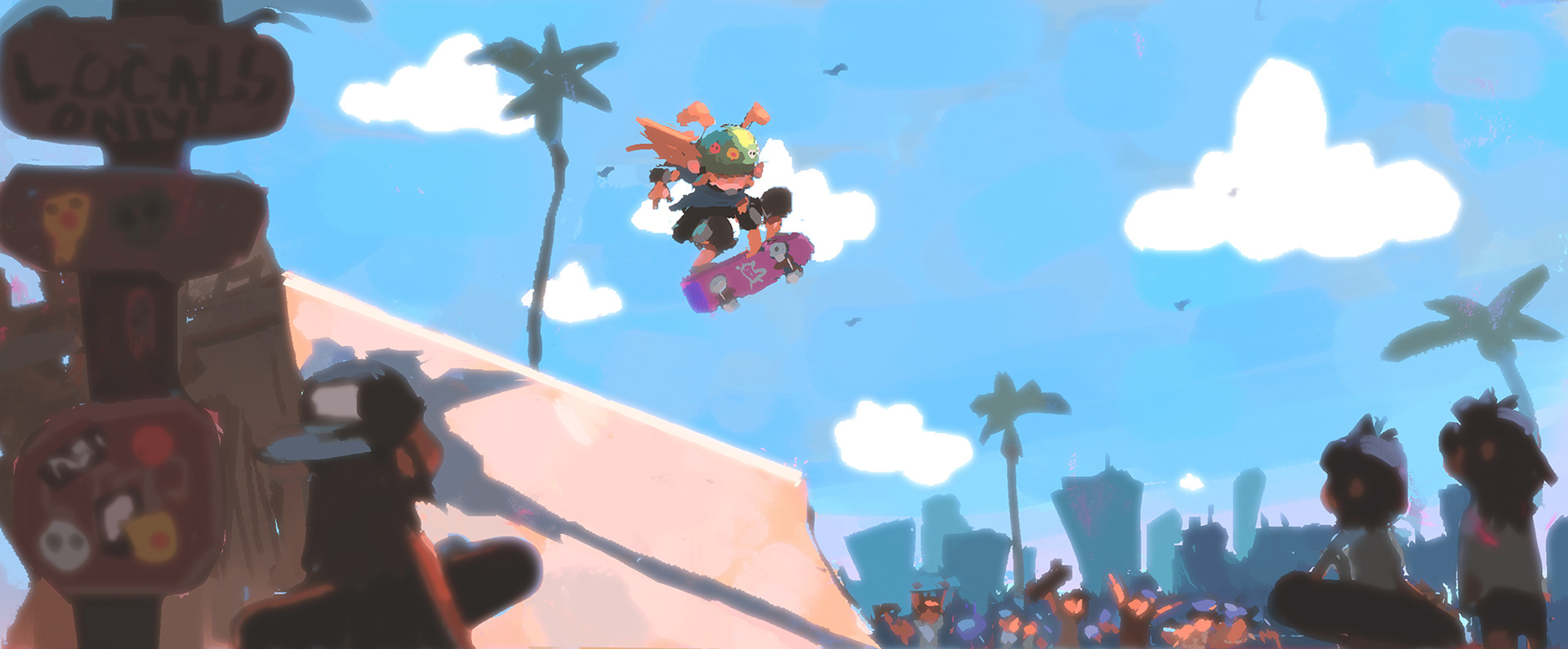 Sk8 is a personal project about an Alien from outer space discovering skateboarding and wanting to become a pro skater. Mr. Alien travels down to earth and meets skaters and go on adventures. I focused on color keys and some set designs. I will post those soon just having fun painting more ideas.